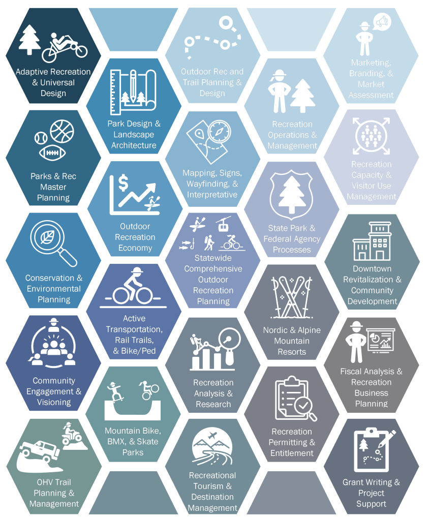 Our team has worked on outdoor recreation projects with over 1/3 of the US state governments, each of the US federal land management agencies, and dozens of rural communities & regions throughout North America.